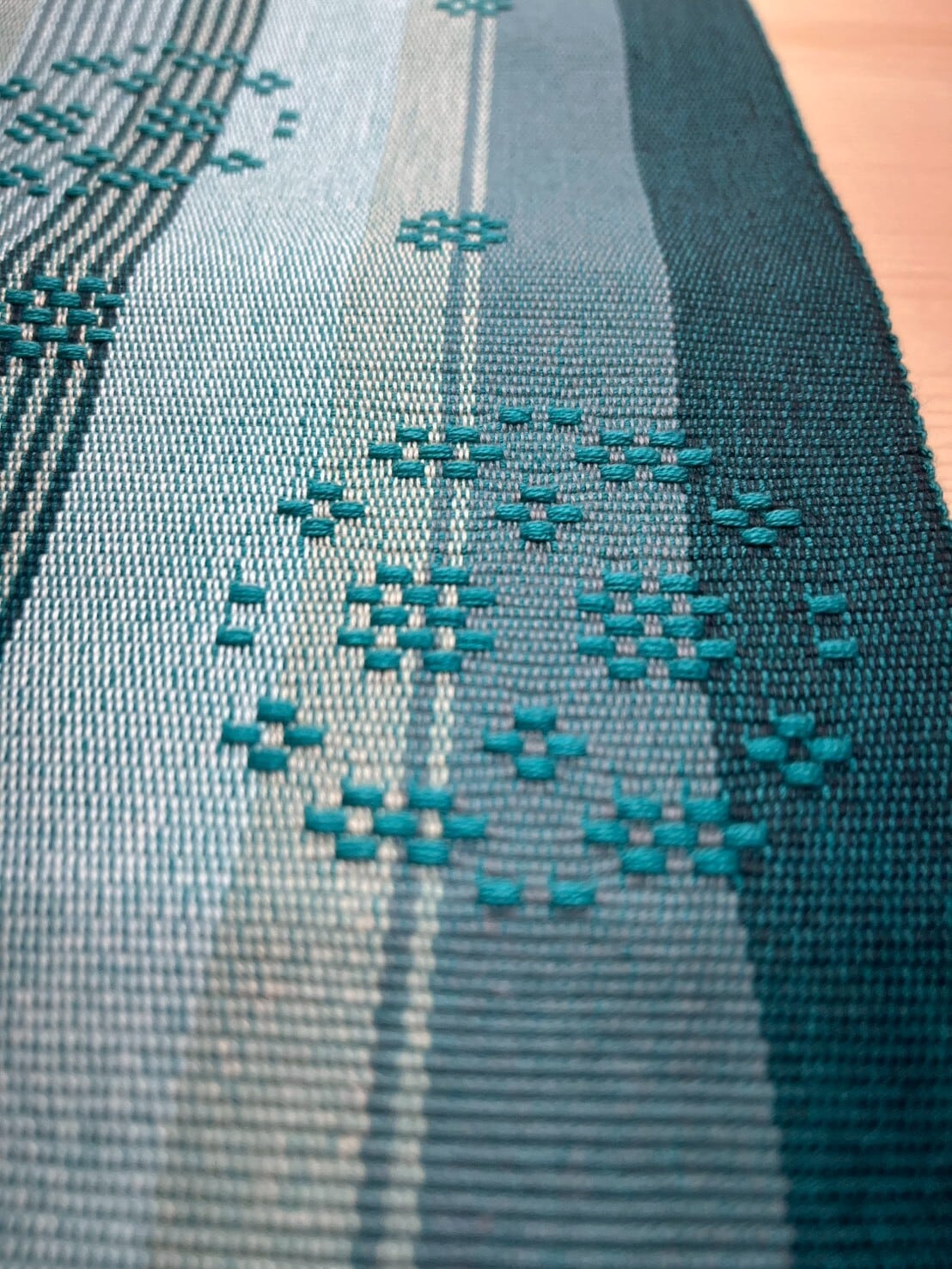 緑がかった海を思わせるグラデーションがかった織り柄、品の良さも兼ね備えたデザイン◎