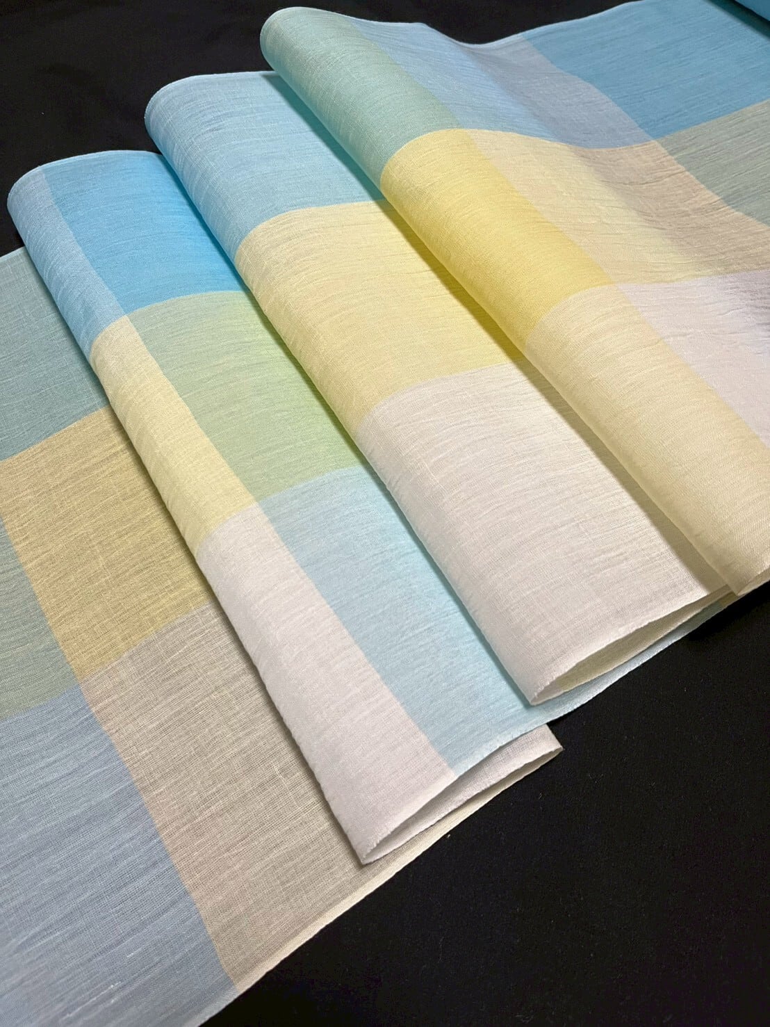 【反物】本場小千谷ちぢみ 吉新織物 小千谷縮 チェック ブルー イエロー グレー
