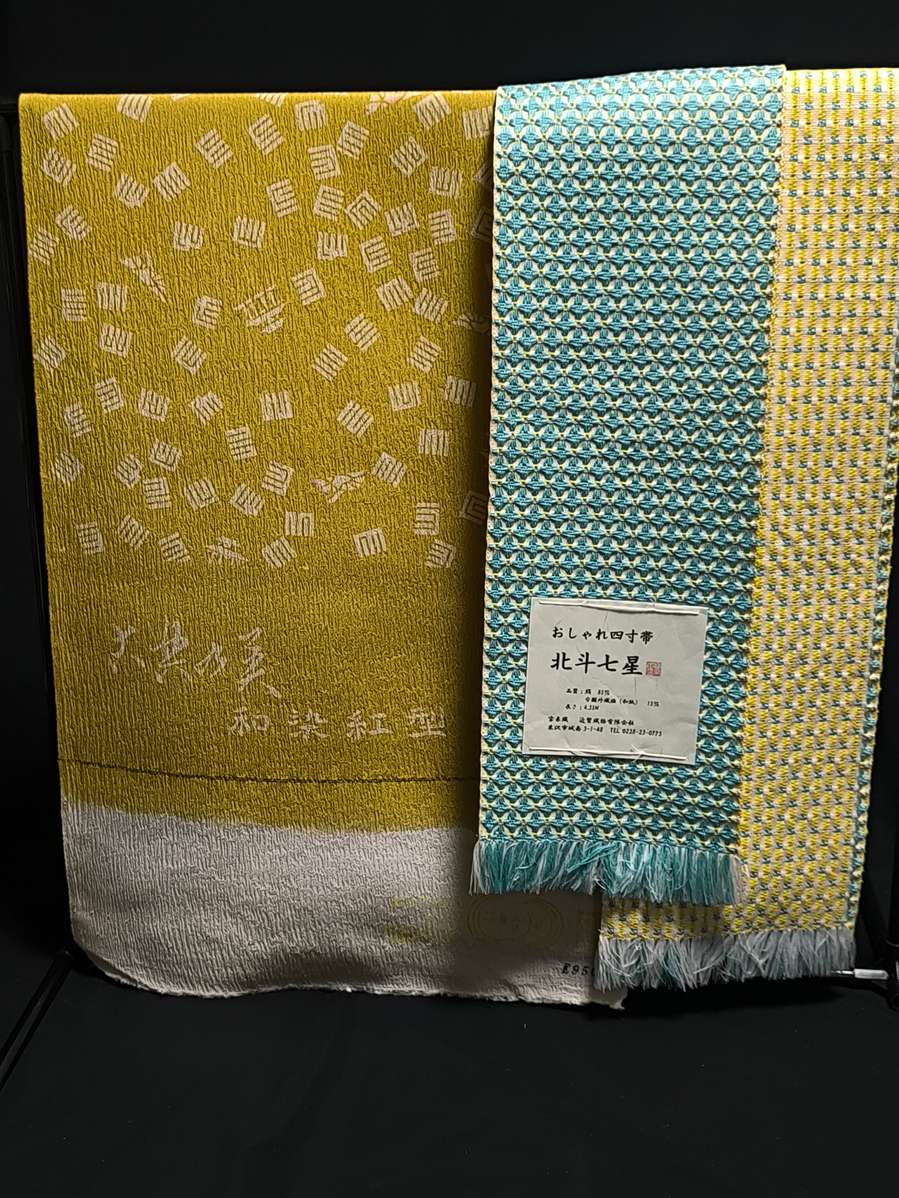 【反物】栗山吉三郎 大典乃美 和染紅型 王朝図 栗山工房