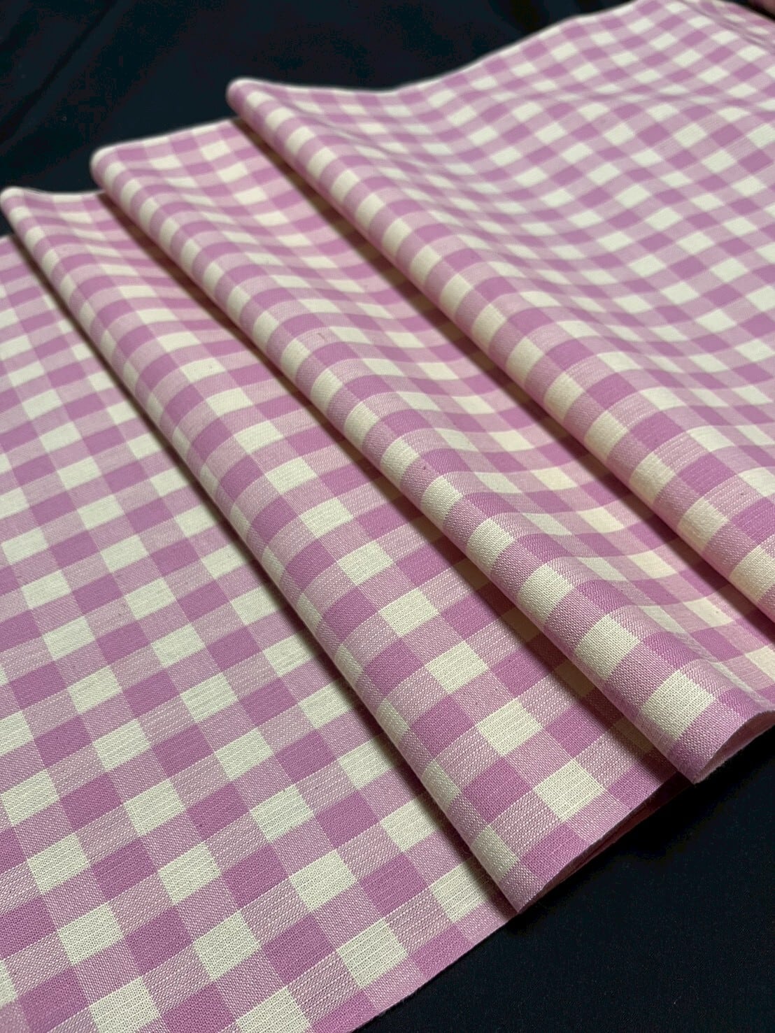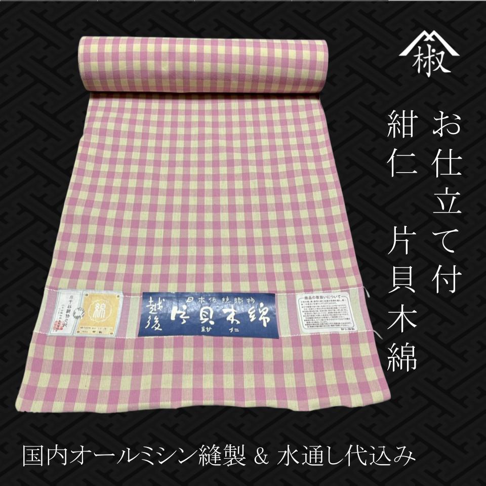 【仕立て代込み】片貝木綿 紺仁 細かいチェック 生成り ピンク