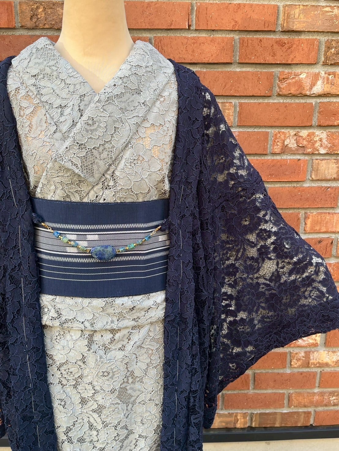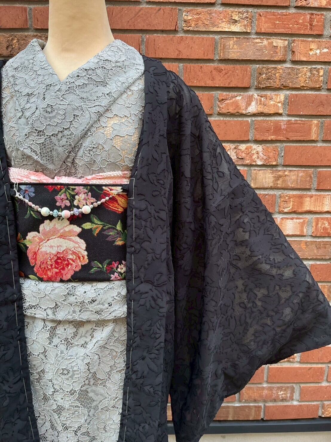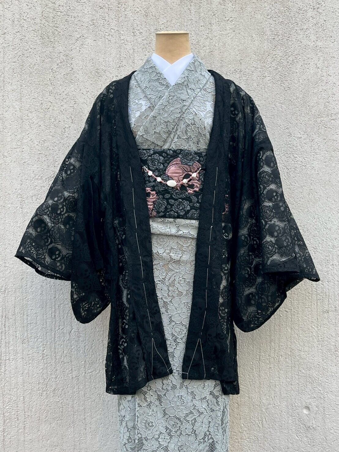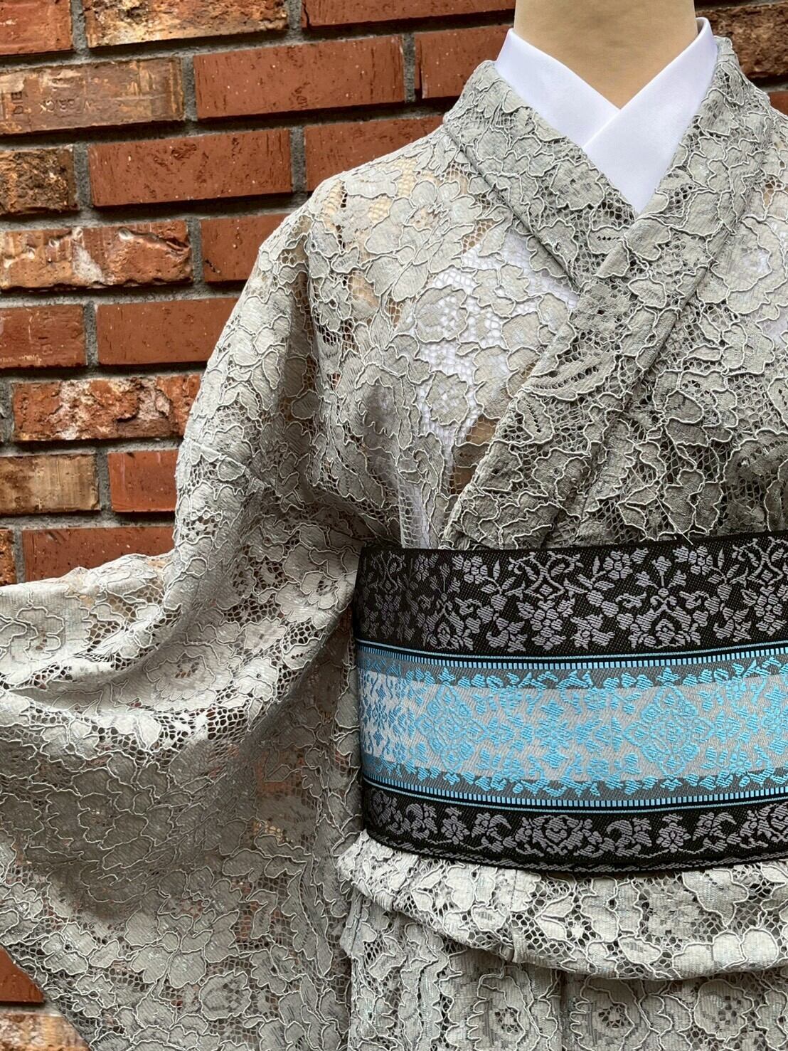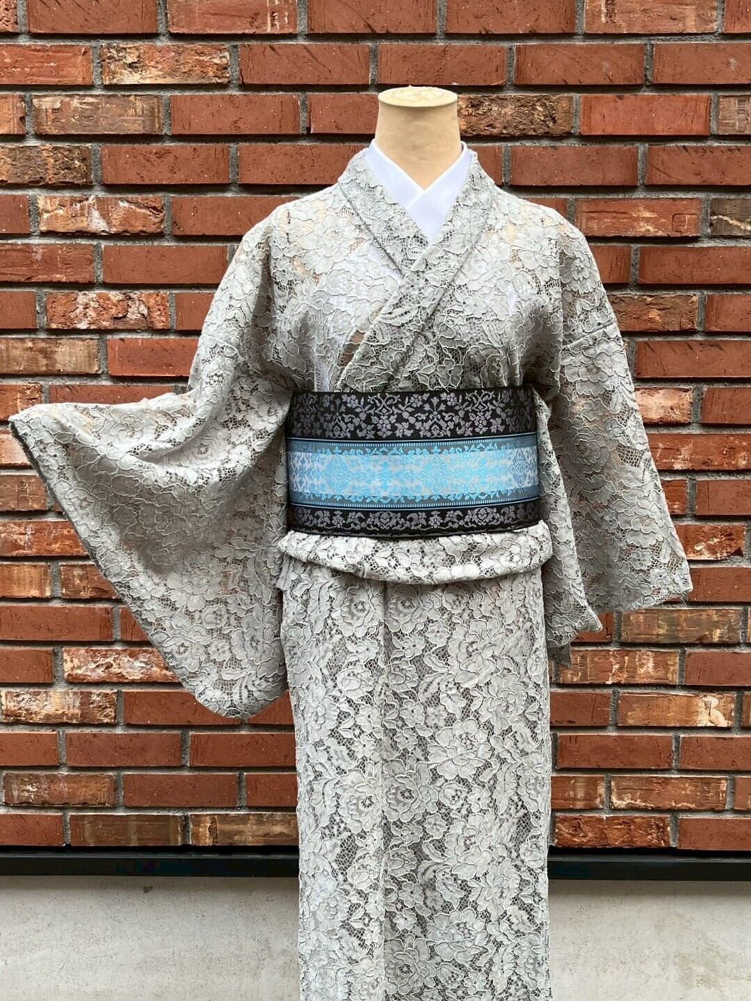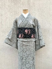 【単衣レース着物】グレー