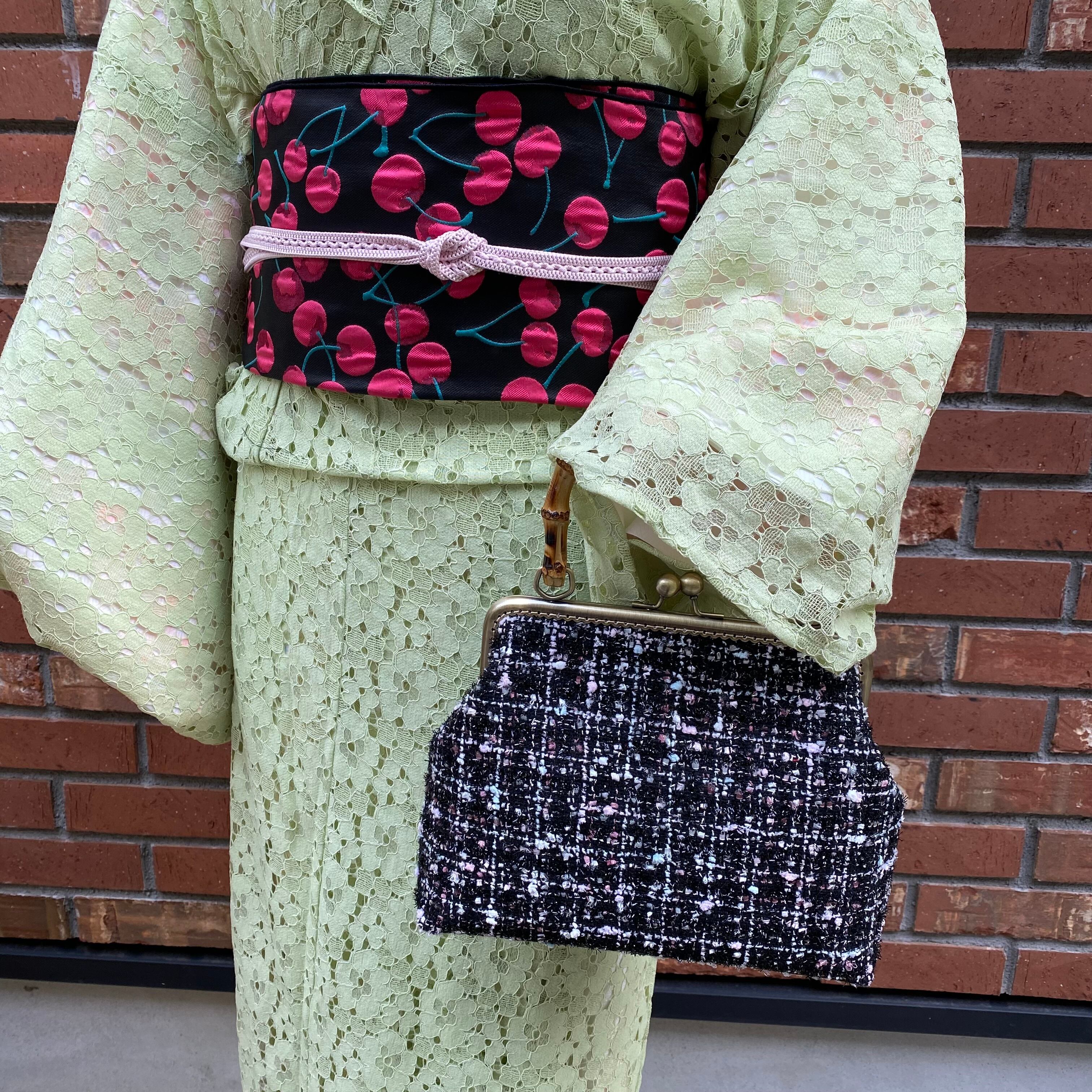 立体感あるさくらんぼの柄の化繊ふくれ織で兵児帯を制作いたしました。